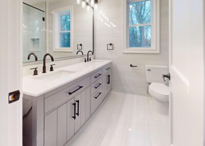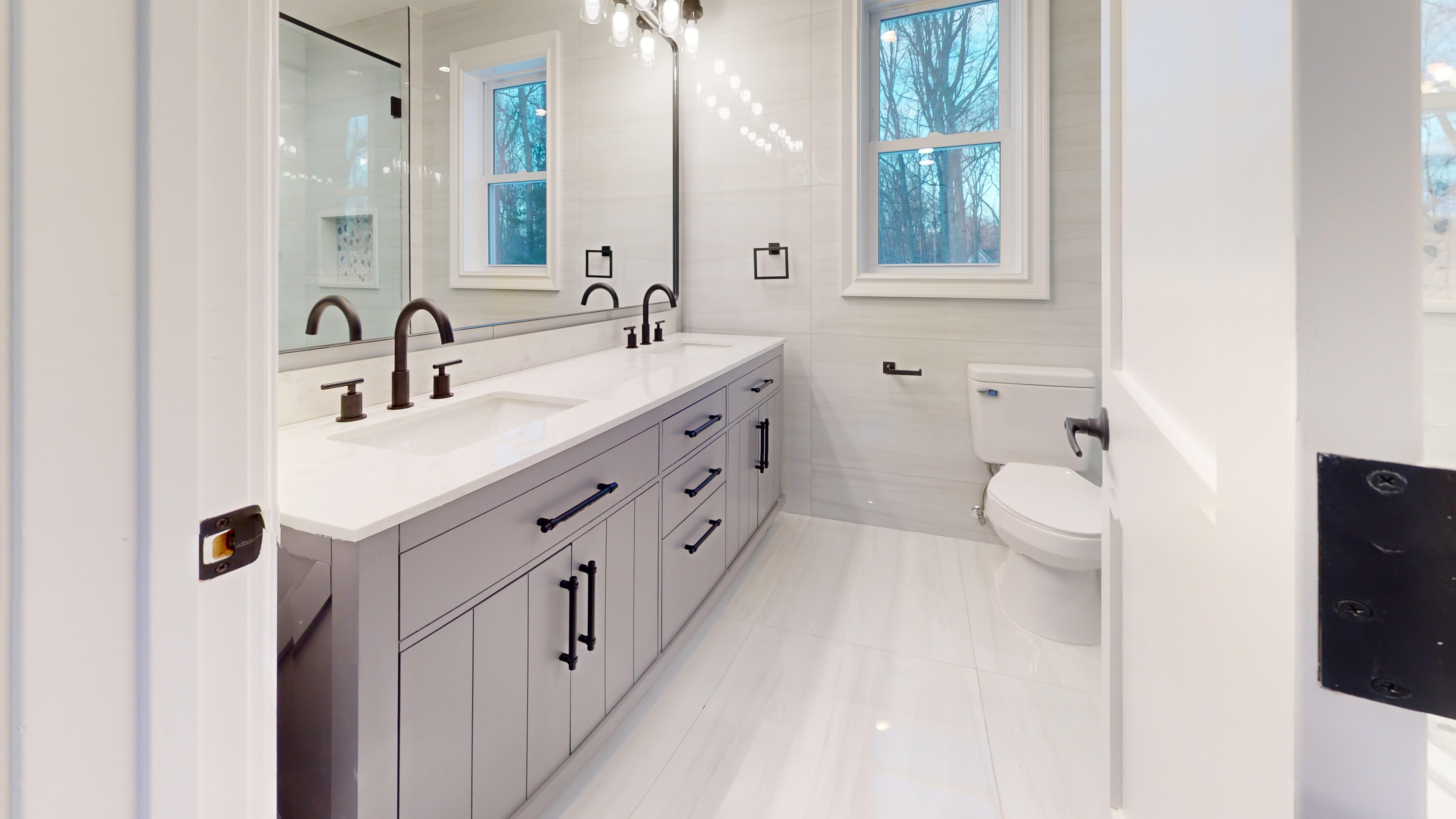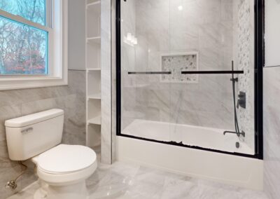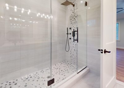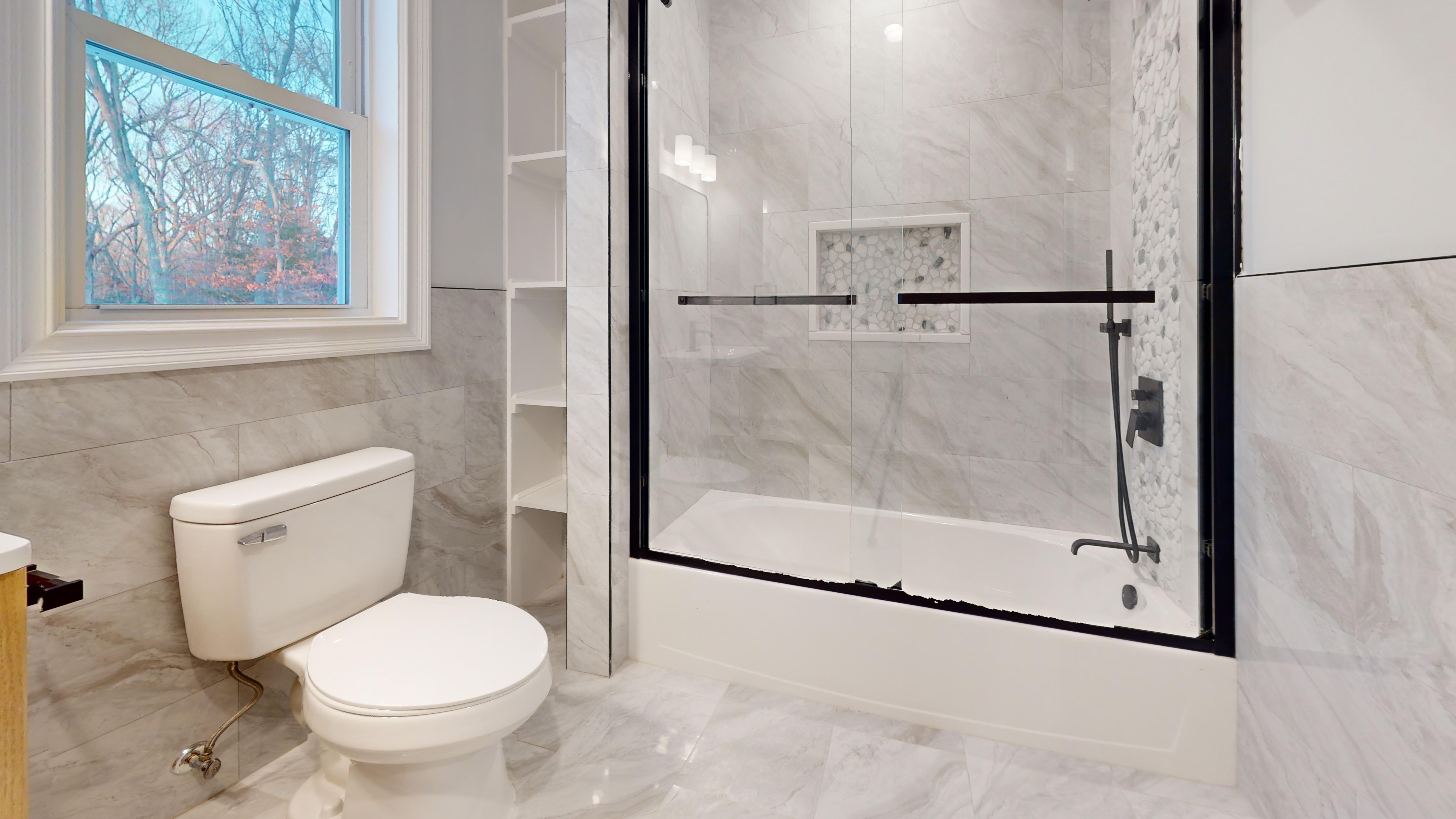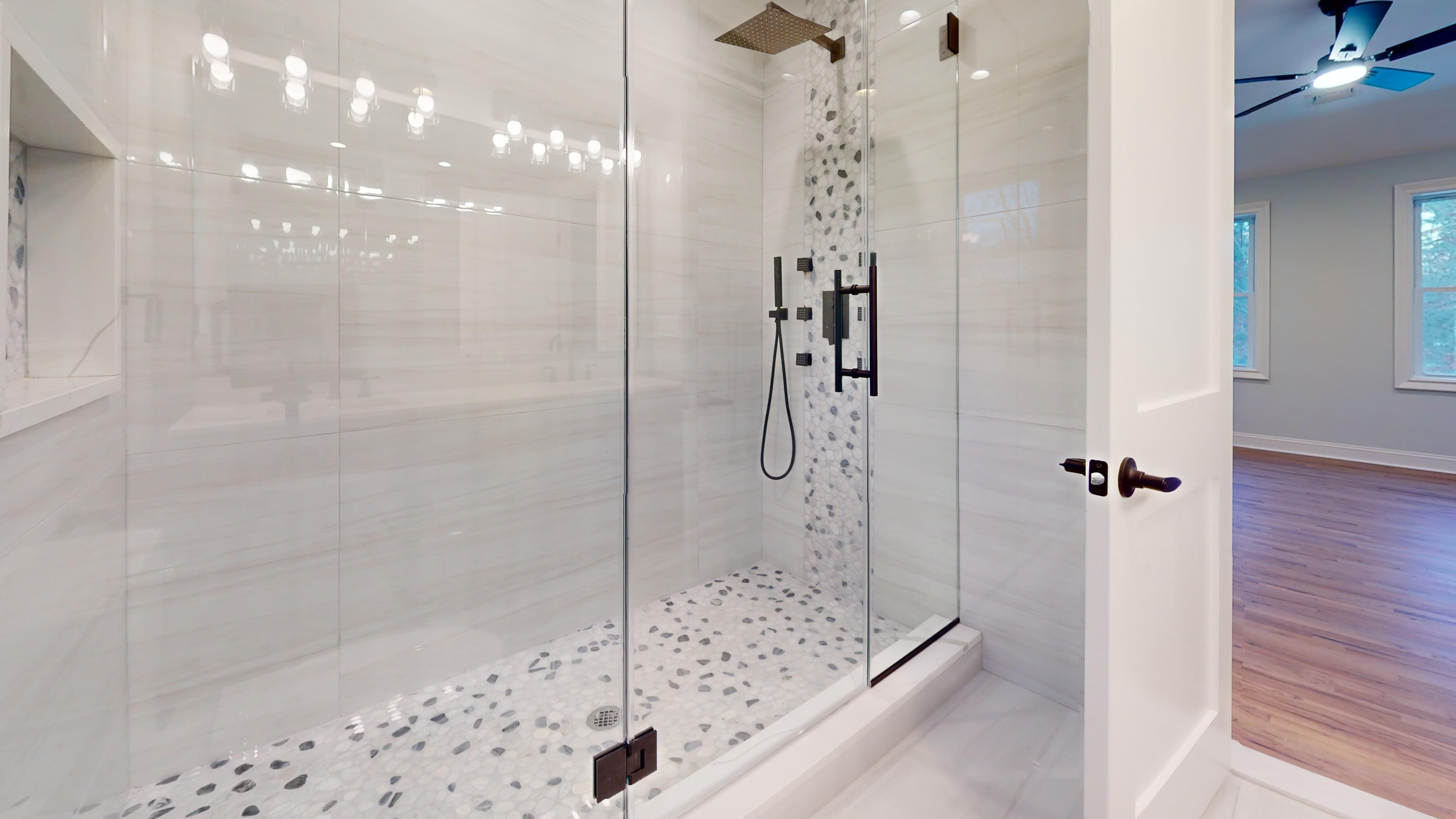 Upstairs, you’ll find a spacious primary suite complete with a walk-in closet and a luxurious en-suite bathroom featuring a custom shower with handheld spray. Two additional bedrooms and a full hallway bathroom complete the second level.