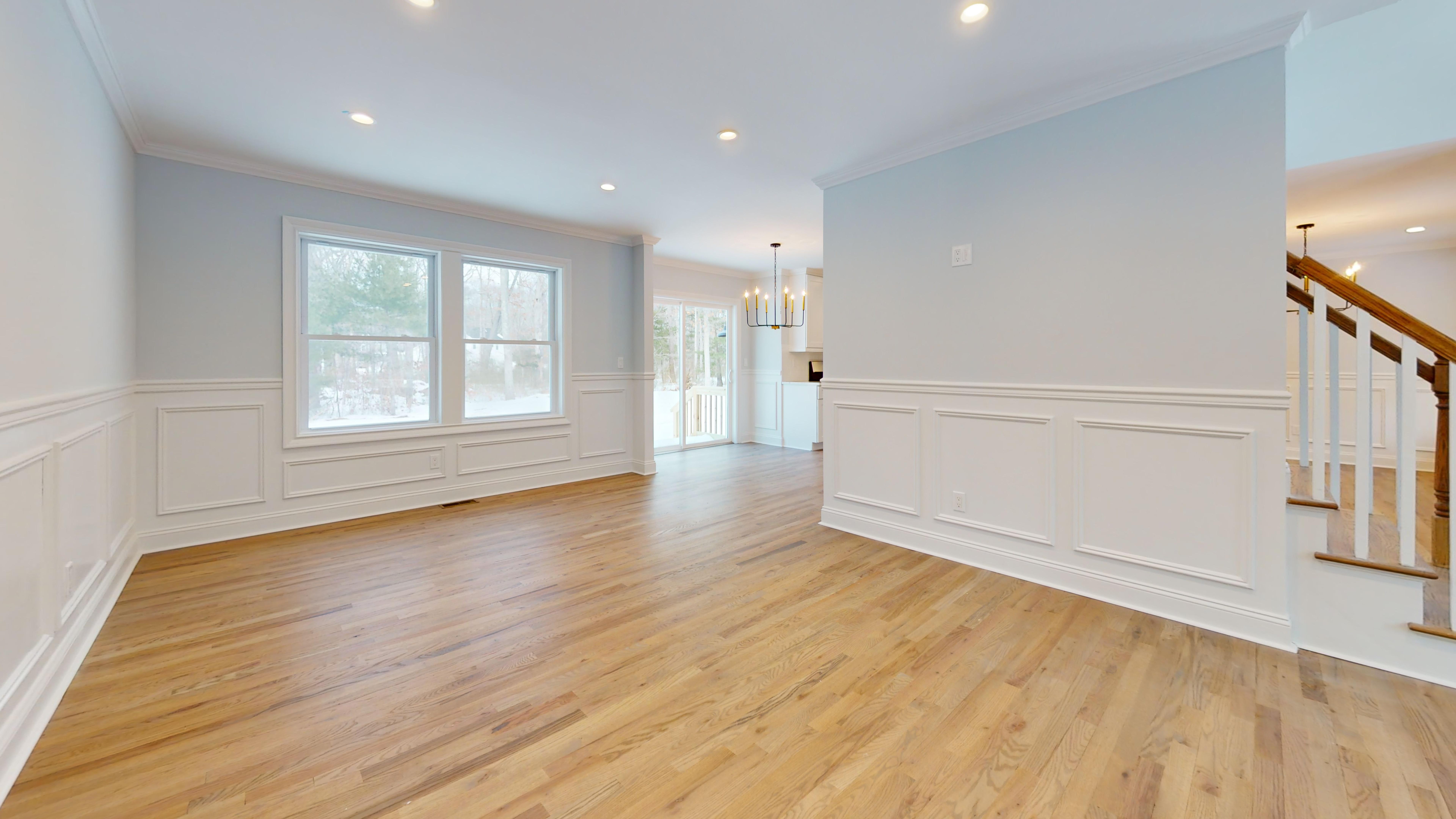 Brand-new Center Hall Colonial showcasing premium upgrades rarely found in standard new construction. The main level features a welcoming entry foyer, formal living and dining rooms, and a comfortable den/family room—perfect for both relaxing and entertaining. The eat-in kitchen is thoughtfully designed with white soft-close cabinetry, quartz countertops, stainless steel appliances, and a center island.